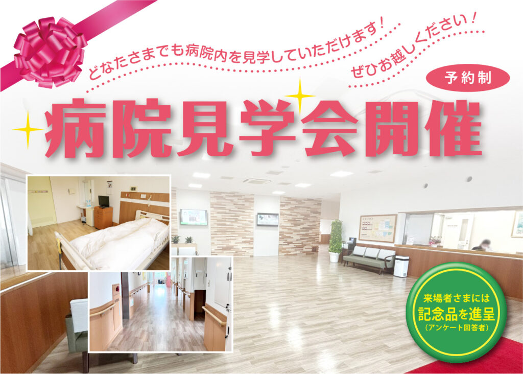 1月に実施いたしましたリニューアル見学会は、多くのみなさまにご参加いただき、誠にありがとうございました。ご好評につき、3月28日(土)に第2回見学会を開催いたします。前回のリニューアル見学会に来られなかった方や再度見学したい方、相談したいなどの方もぜひご参加ください。地域の皆さまに、より安心していただける医療・介護を目指し、丁寧にご案内いたします。見学終了後、アンケートにご協力いただいた方には記念品をご用意しております。みなさまのご来場を心よりお待ち申し上げます。